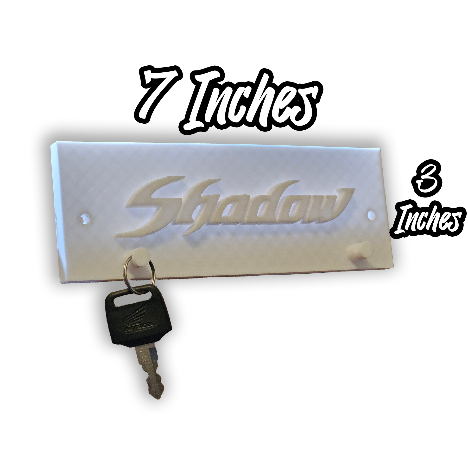 Perfect for your man/woman cave, is this custom key hanger. Holds 2 keys, made with strong PLA HIGH DETAIL plastic, this is sure to compliment and show your love for your Honda Shadow motorcycle! Available in multiple color options!